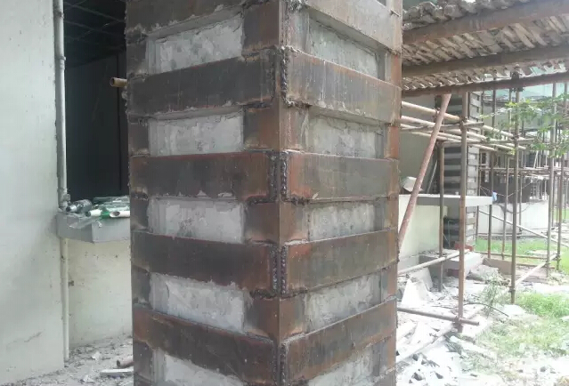 該法是在構(gòu)件外圍包以型鋼的加固方法, 具體可分為濕式外包鋼加固法和干式外包鋼加固法。一般用于混凝土柱、梁、屋架,特別是大型結(jié)構(gòu)和大跨度結(jié)構(gòu)的加固。其中濕法是指型鋼與構(gòu)件通過乳膠水泥、環(huán)氧樹脂等粘結(jié)劑與原構(gòu)件粘結(jié), 新加型鋼與原構(gòu)件形成整體共同工作; 干法指新加型鋼與原構(gòu)件之間不采用粘結(jié)劑粘結(jié), 不能保證結(jié)合面剪力的有效傳遞。在抗震加固中一般采用濕式外包鋼加固法。適用于加固鋼筋混凝土梁、柱及磚柱、磚煙囪等,但對于圓形和曲面構(gòu)件加固工藝則相對復雜。它具有施工方便,現(xiàn)場工作量少,能有效提高構(gòu)件抗震性能的優(yōu)點, 其優(yōu)點是施工方便,現(xiàn)場工作量少,受力可靠。缺點是用鋼量較大,加固維修費用較高。當采用化學灌漿外包鋼加固時,型鋼表面溫度不應超過六十度;當環(huán)境具有腐蝕性介質(zhì)時,應有可靠的防護措施。
